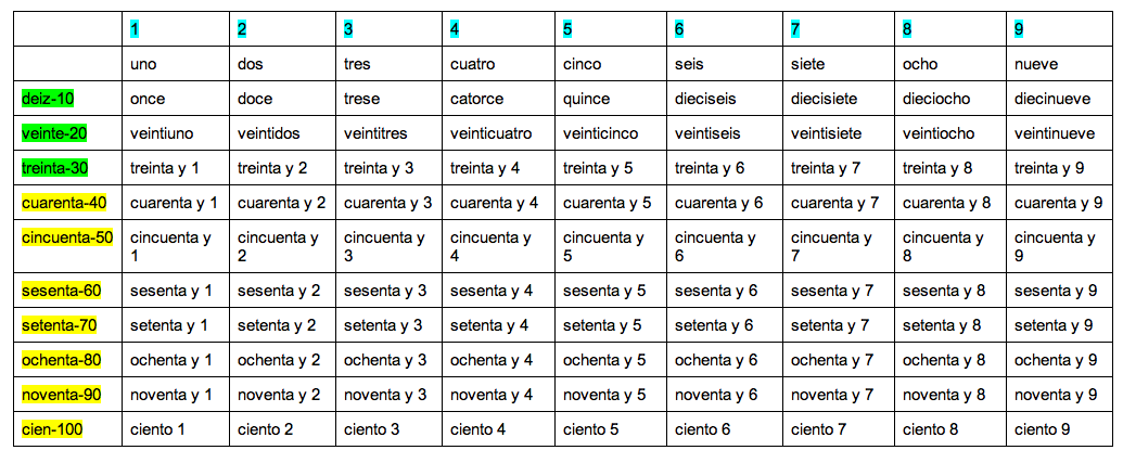 1000 Spanish Words Numbers 1 100 In Words Numbers 1 100 In