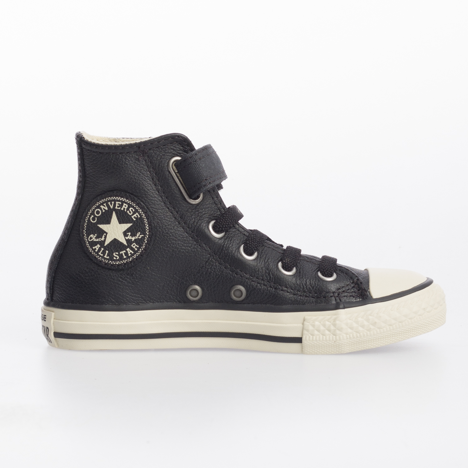 Converse Junior Chuck Taylor All Star Strap Hi Black Leather Lace