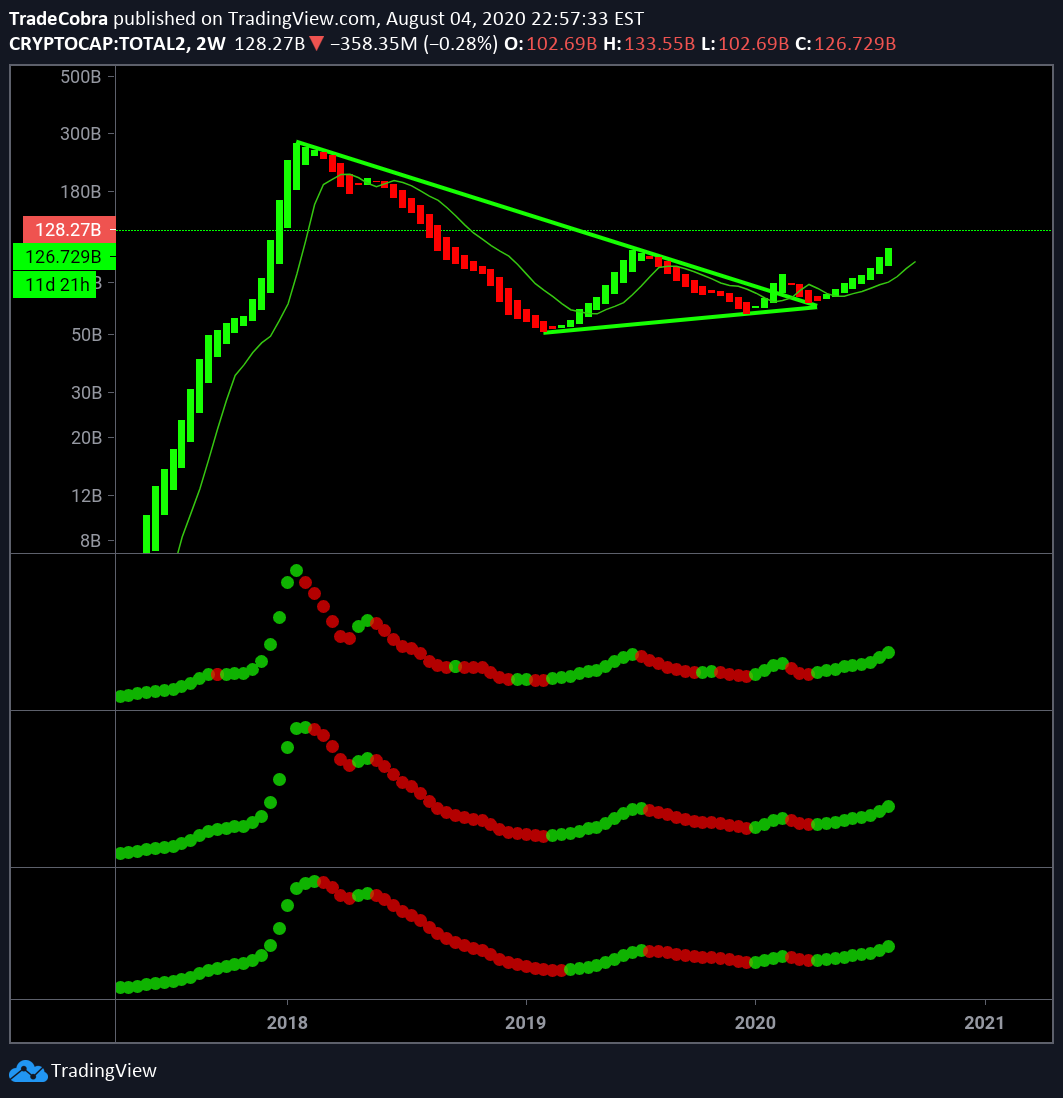 Crypto market cap chart tradingview. Click the usd btc switch to see prices in bitcoins. Total market cap of all crypto looks just closed another week above the grand fibonacci line at 238 7 billion. That clears us for more up side up to at least the blue trend line around 340 billion.