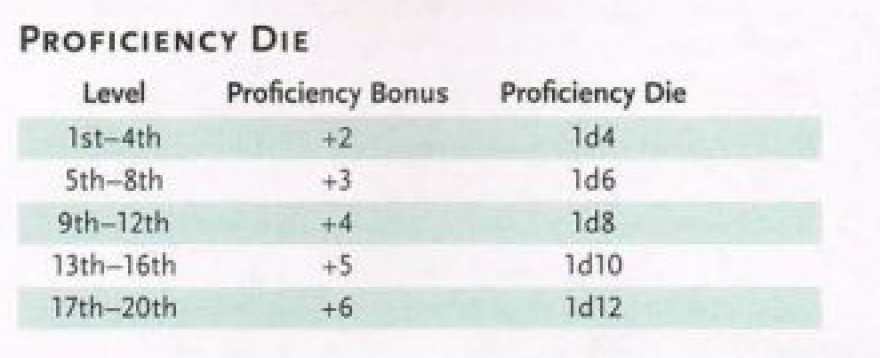 D D Proficiency Bonus Chart