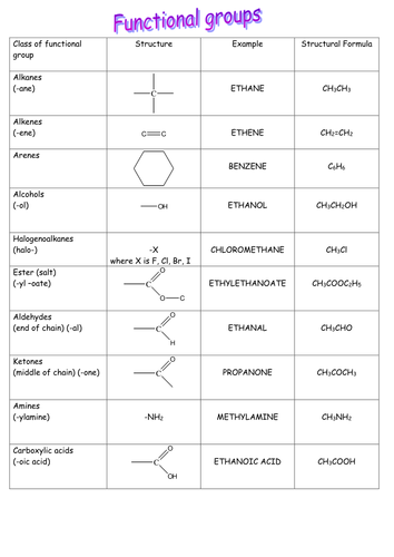 Table Chart On Functional Groups Org Chem Teaching Resources