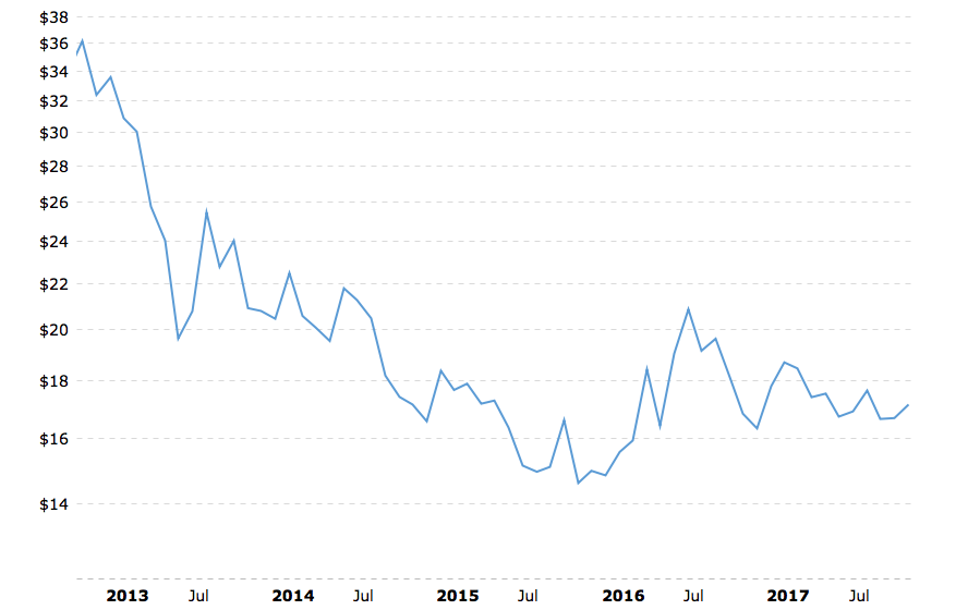 Historical Silver Prices 100 Year Chart 2019 04 19 Macrotrends 2