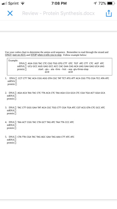 Solved Stil Sprint 7 08 Pm 72 Review Protein Synthesis