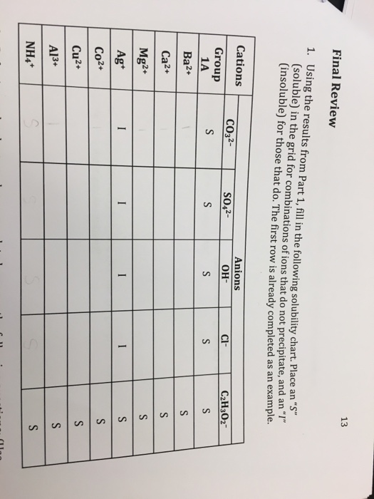 Solved Using The Solubility Chart Below Identify The Cat