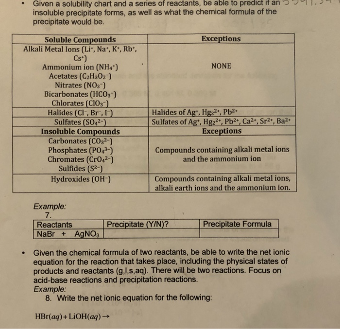 Solved Given A Solubility Chart And A Series Of Reactants