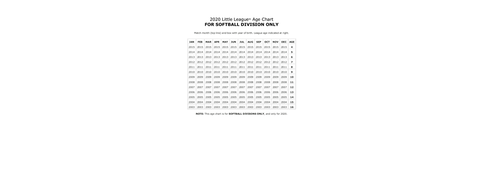 2020 Little League Age Chart Baseball