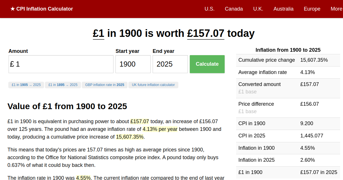 1 In 1900 2020 Uk Inflation Calculator