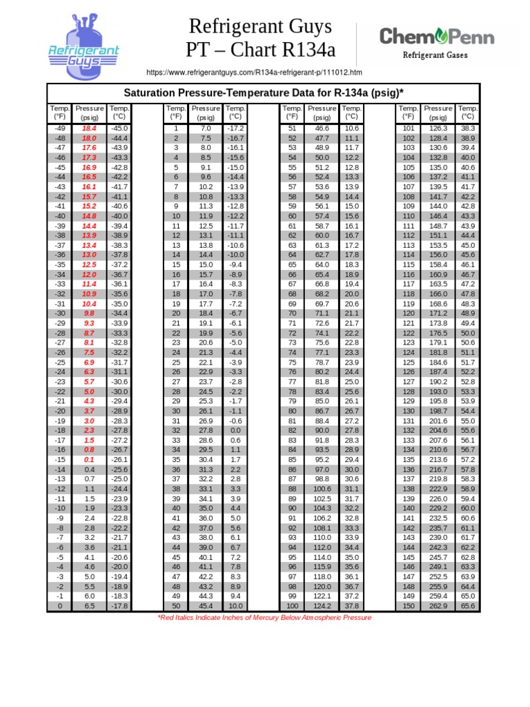 Pt Chart For 134a