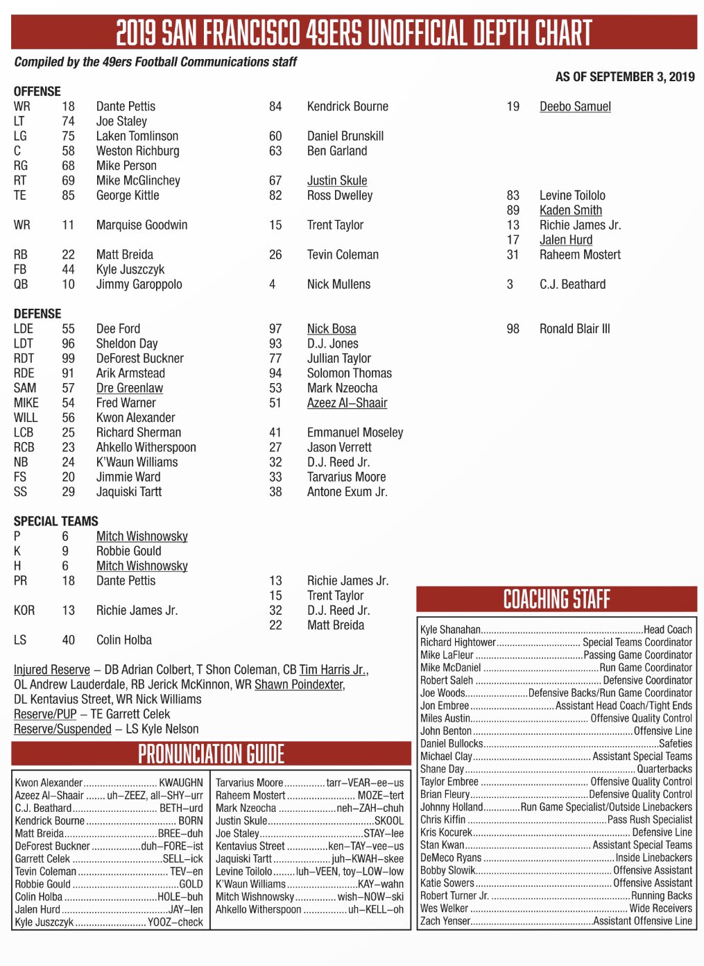 Matt Barrows On Twitter Here S The Depth Chart The 49ers Pr