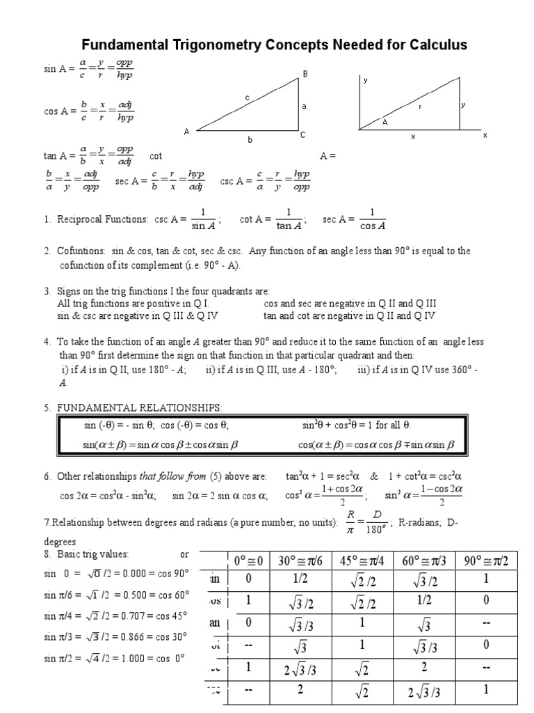 Trigonometry Sin Cos Tan Cot Csc Sec Pi Angle Formula Pdf Download