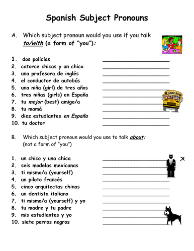 Spanish Subject Pronouns Practice Worksheet Teaching Resources