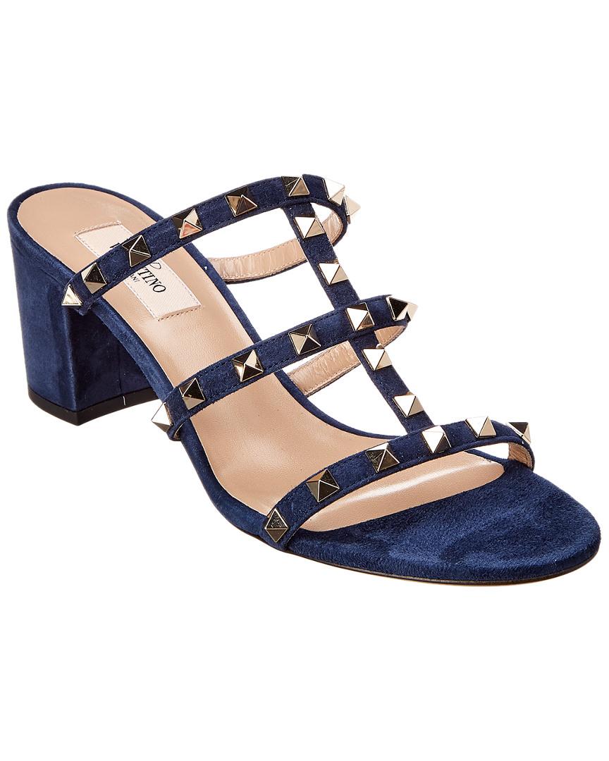 Valentino Garavani Rockstud Suede Cage Sandal In Blue Modesens