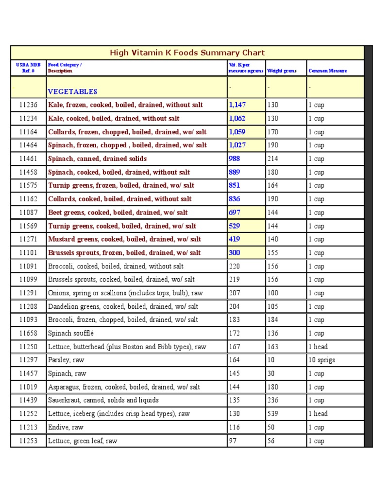 High Vitamin K Foods Summary Chart Docx Document